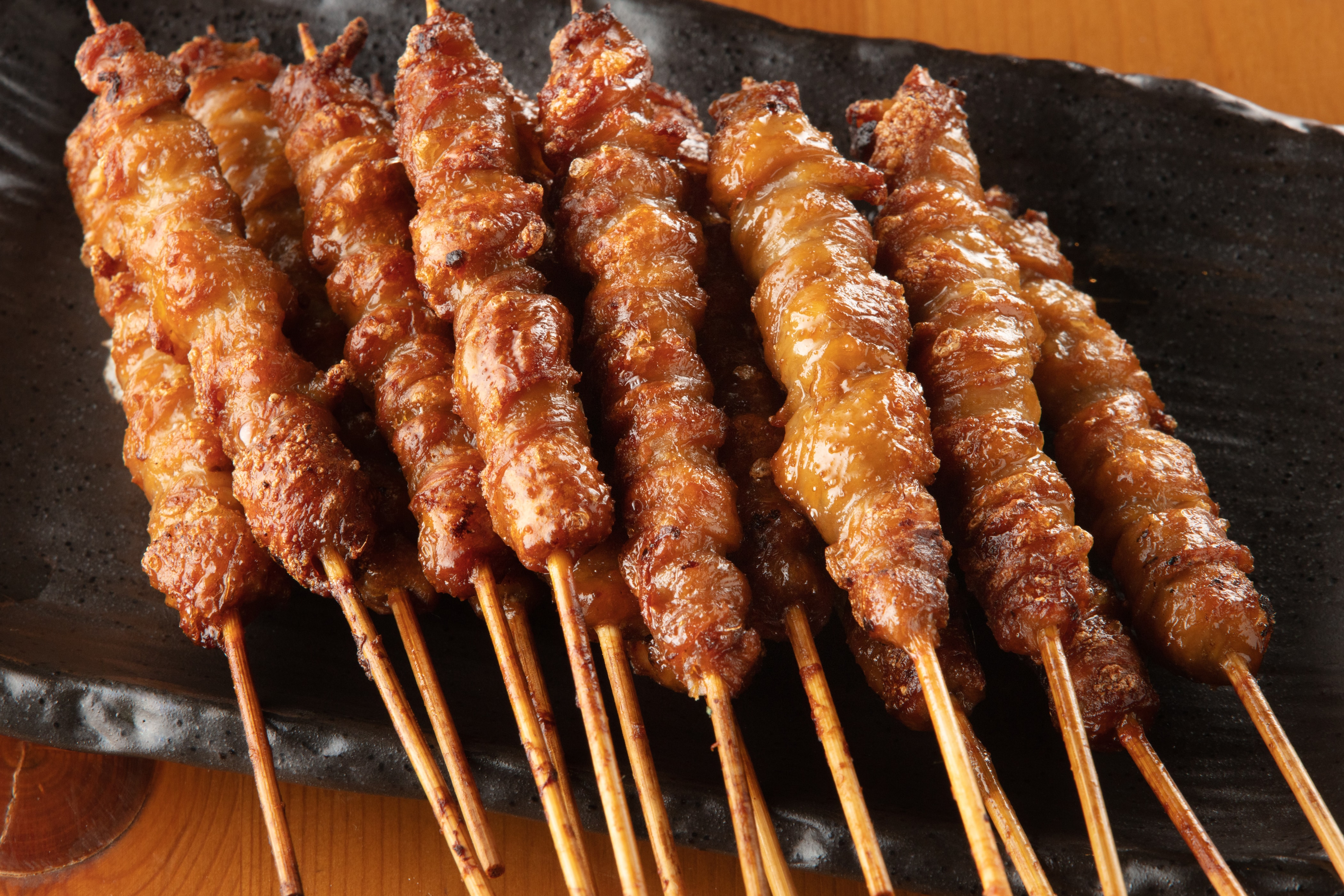 とりかわを串にぐるぐる巻き付けて